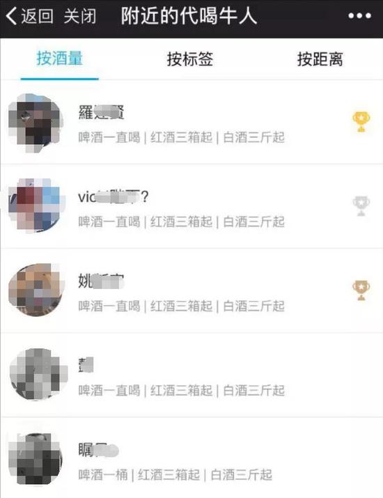 懷著對這項(xiàng)“神服務(wù)”的好奇,韓國記者還在中國特地體驗(yàn)了一番。據(jù)《中央日報(bào)》報(bào)道,4日晚,韓國記者辦公室所在的北京市中心建國門一帶,記者嘗試使用了該軟件。建國門這附近還不算娛樂區(qū)域,但在半徑400米以內(nèi)地圖上跳出10名代喝人的位置。記者在點(diǎn)擊其中一名代喝人后立即彈出他的自我介紹——“奧運(yùn)會金牌級喝酒選手”,“酒量是白酒兩瓶、啤酒一箱”。