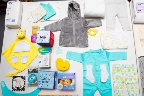 嬰兒箱里的嬰兒睡袋、背心、褲子、手套和帽子都是中國制造,甚至連圍嘴、浴巾、指甲銼和溫度計等一些物件也來自中國。盒子里只有毯子和毛巾是由歐洲制造的,產婦衛(wèi)生巾來自英國諾丁漢郡,而一本精裝書由倫敦出版。