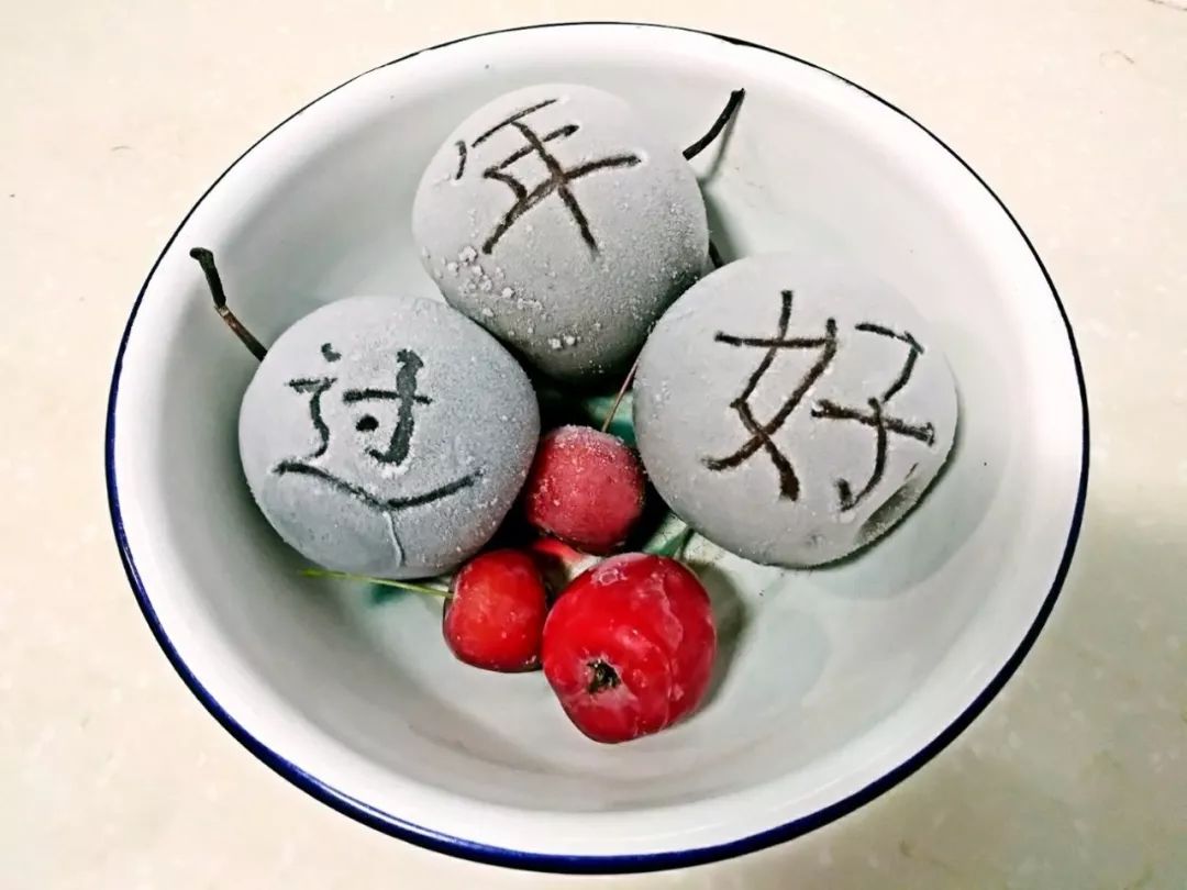過年了,凍梨、紅果和鐵盆很配噢!看著緩出來的白霜兒,捏一捏,捂一捂,這是我心里地地道道的關于家的味道。