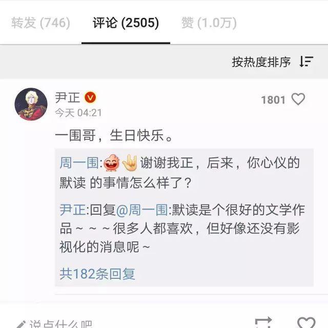 而且之前早有傳言,說(shuō)是尹正帶著《默讀》去找過(guò)周一圍,可是被周一圍給拒絕了。