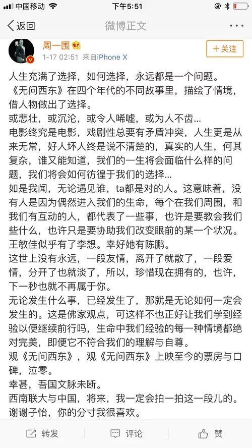 而在不久之后,周一圍發(fā)感慨,感謝了一圈,也唯獨(dú)沒(méi)提到妻子。