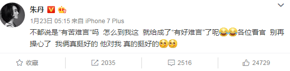 這要是兩位單身,或許還好一點(diǎn),關(guān)鍵是這可是兩個(gè)為人父母的,說(shuō)出這么高山流水覓知音的話(huà),確實(shí)不合適。不但如此,周一圍的夫人,朱丹在微博里一直為老公賣(mài)力宣傳。