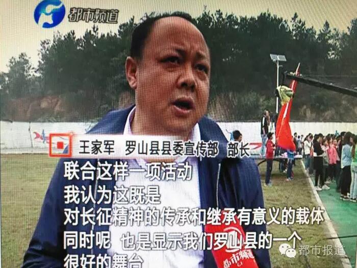 河南都市頻道韓佳、曉紅、嘉寧、劉雯和魅力881主持人陽(yáng)陽(yáng)和各自的戰(zhàn)隊(duì)隊(duì)員一起,在紅25軍出發(fā)地——羅山縣何家沖進(jìn)行一場(chǎng)特別的國(guó)旗傳遞。