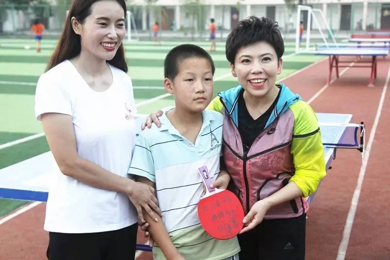 鄧亞萍與小隊(duì)長(zhǎng)切磋球技 關(guān)注體育教育基礎(chǔ)發(fā)展