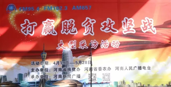 4月19日上午,《打贏脫貧攻堅(jiān)戰(zhàn)》大型采訪活動在河南廣播大廈啟動,活動由省扶貧辦、省委農(nóng)辦、河南人民廣播電臺聯(lián)合主辦,河南新聞廣播承辦。