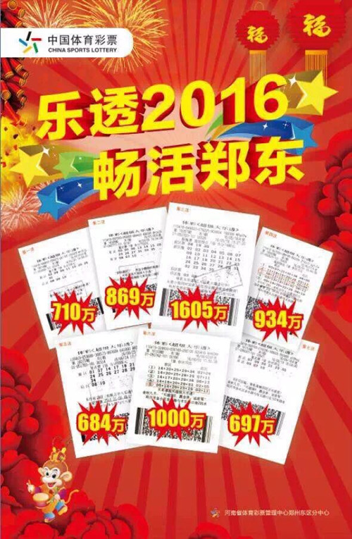 進入2016年以來,超級大樂透玩法500萬元、千萬元大獎頻頻花落綠城,讓鄭州市廣大彩民朋友充分感受到了中國體育彩票的魅力!據(jù)統(tǒng)計,截止9月中旬,鄭州東區(qū)分中心所轄體育彩票銷售網(wǎng)點已經(jīng)中出500萬元以上大樂透游戲大獎7個,最高中獎金額高達1605萬元。