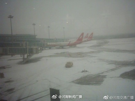 機(jī)場信息:早上七點(diǎn)半,鄭州機(jī)場仍在降雪,經(jīng)全力工作,南跑道正在安排航班起降,但放行速度較慢。北跑道正在除冰,早上出港航班均有不同程度延誤。請(qǐng)廣大乘客拔打96666問訊,為了保障旅客的安全和順利出行,機(jī)場各個(gè)崗位徹夜無眠工作。