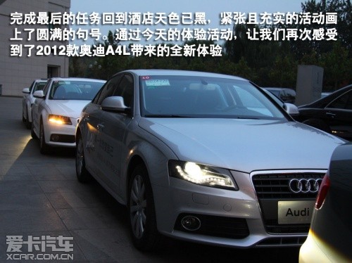 新奧迪A4L“都市精英之旅”作為奧迪A4L2012年型上市后的一次更深入的體驗(yàn)活動(dòng),計(jì)劃于2011年9-10月期間,分別在鄭州、西安、天津、濟(jì)南持續(xù)舉行四個(gè)分站的系列投放活動(dòng)(鄭州及西安站已經(jīng)圓滿落幕),一汽-大眾奧迪將通過這一系列的活動(dòng),向用戶全面展現(xiàn)2012款?yuàn)W迪A4L。而此次天津站的活動(dòng),主辦方安排了別具經(jīng)特色的體驗(yàn)活動(dòng),讓我們通過完成任務(wù)來全方面體驗(yàn)奧迪A4L的再次改變。
