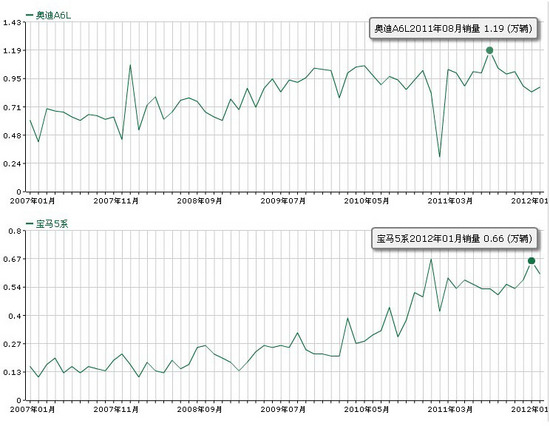 【寶馬5系和奧迪A6L近幾年來的銷量走勢對(duì)比】