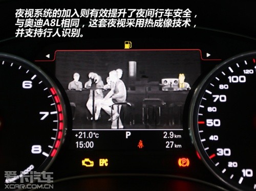 而在全新的頂配車型中,夜視系統(tǒng)的加入則有效提升了夜間行車安全,與奧迪A8L相同,這套夜視采用熱成像技術(shù),并支持行人識別,在同級車中雖然并非首創(chuàng),但絕對實用。