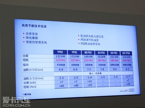 至于動力總成方面,奧迪的工程師雖然沒有太大的動作,但為了讓車主們有更多的選擇,他們提供了四款不同排量的發(fā)動機,分別為:2.0升直列四缸渦輪增壓(TFSI)、2.5升V型6缸自然吸氣(30FSI)、2.8升V型6缸自然吸氣(35FSI)、3.0升V型6缸機械增壓(50TFSI)。