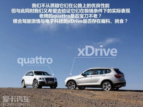 我們不從質(zhì)疑它們?cè)诠沸阅苌系膬?yōu)良表現(xiàn),但與此同時(shí)我們又很希望去驗(yàn)證它們?cè)跇O端條件下的實(shí)際表現(xiàn),于是,在本期的四驅(qū)測試中,我們挑選了目前市場上最具代表性的兩款車,在荒蕪的沙地上來一次爬坡測試。到底看看在公路上“生龍活虎”的渦輪增壓發(fā)動(dòng)機(jī)在越野路況下的實(shí)際表現(xiàn)到底如何?