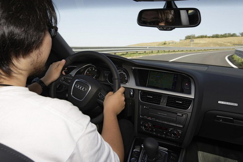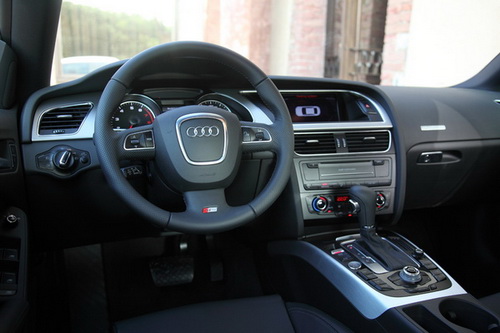 坐上駕駛座后,我再次試圖尋找它與Coupe款的不同之處,但最終得出的結(jié)論是,除了左側(cè)車門(mén)上的四個(gè)車窗開(kāi)關(guān)按鈕外(Coupe款只有兩個(gè)),再?zèng)]有什么特征能讓我馬上意識(shí)到正坐在一輛A5 Sportback里了。盡管奧迪將A5 Sportback視為一款開(kāi)創(chuàng)新天地的新車型來(lái)進(jìn)行定位,但相信設(shè)計(jì)師的思路也是沒(méi)有必要為它單獨(dú)設(shè)計(jì)一套內(nèi)飾方案,所以在我坐進(jìn)駕駛座的一刻,滿眼再熟悉不過(guò)的奧迪元素以及A5車系特有的低矮坐姿讓我意識(shí)到這就是奧迪,這就是A5。