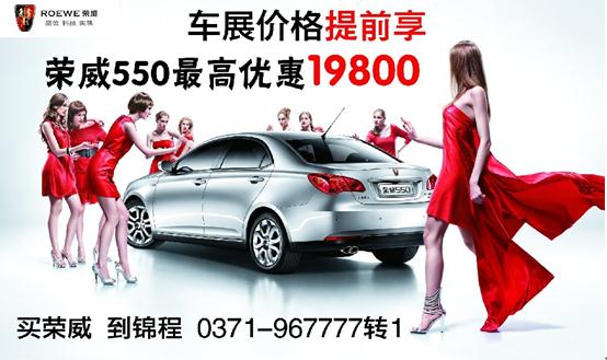 近日,編者從河南錦程榮威了解到,榮威車展價(jià)格提前享,榮威550最高直降1.98萬元。購榮威車的朋友們不用再擠車展,在優(yōu)雅的環(huán)境中提前享受有車生活,河南錦程榮威為廣大車友朋友們提供最實(shí)惠最保障的購車政策。買榮威汽車,到河南錦程看看再?zèng)Q定,搶購熱線:0371—967777轉(zhuǎn)1.