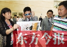 “為啥還配發(fā)有眼鏡?”不少人對東方今報發(fā)行員工手中的眼鏡比較感興趣。當(dāng)?shù)弥獔蠹埵?D的,戴上眼鏡,“樓”就站在報紙上時,不少客商紛紛戴上眼鏡體驗(yàn)一把。