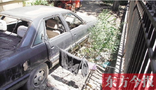 在采訪中得知,國(guó)棉三廠綠化街也有一輛“僵尸車”。東方今報(bào)記者在現(xiàn)場(chǎng)看到,這是一輛黑色馬自達(dá)轎車,經(jīng)過(guò)長(zhǎng)時(shí)間的風(fēng)吹雨打,油箱蓋、雨刮器、車頭銹跡斑斑,車頂凹陷,引擎蓋上放著一塊磚,同樣沒(méi)有車牌號(hào)。