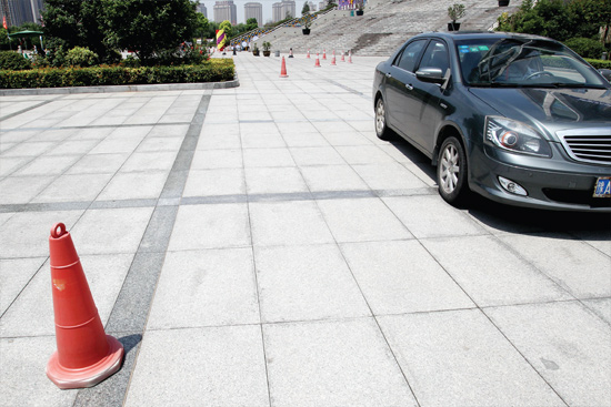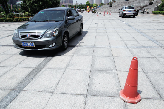 記者坐在駕駛位置,車(chē)輛左前保險(xiǎn)杠與左前車(chē)輪夾角處,是視覺(jué)盲區(qū);即使將車(chē)座調(diào)至最高位置,如果物體低于車(chē)前引擎蓋高度,仍然無(wú)法發(fā)現(xiàn)障礙物。