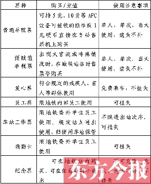 ◎車票種類 地鐵運(yùn)營(yíng)初期分七類票