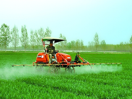 4月11日,濮陽縣城關(guān)鎮(zhèn)前田丈村的麥田里,一臺農(nóng)機正在噴灑農(nóng)藥。針對近期小麥病蟲害情況,濮陽縣組建了多支植保專業(yè)防治隊伍,統(tǒng)一為轄區(qū)麥田進行機械化病蟲害防治和除草作業(yè)。畢海濱 攝