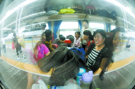 據(jù)鄭州鐵路局介紹,8月20日到9月11日,鄭州鐵路局加開(kāi)了23趟棉農(nóng)專(zhuān)列運(yùn)送摘棉工進(jìn)疆。為方便棉農(nóng)就近上車(chē),節(jié)約棉農(nóng)旅途成本,這些列車(chē)將分別從棉農(nóng)較集中的商丘、許昌、寧陵、蘭考等車(chē)站始發(fā)。 (趙鵬 攝)