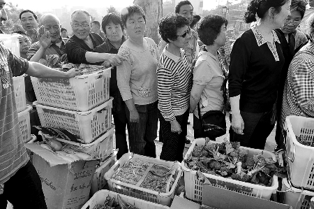 市民排長(zhǎng)隊(duì),來買便宜菜