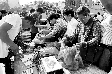 在現(xiàn)場(chǎng),管城區(qū)商務(wù)局的工作人員忙個(gè)不停。該局工會(huì)主席李國(guó)占說,不到6點(diǎn)半,就有很多市民提著籃子來買菜,7點(diǎn)鐘開始賣菜時(shí),已經(jīng)有200多人在排隊(duì)。