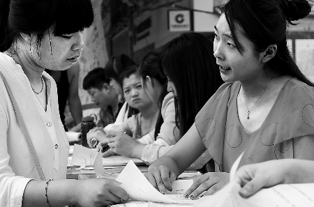 這也表現(xiàn)在當(dāng)天的招聘活動(dòng)上。在當(dāng)天活動(dòng)的鄭州主會(huì)場(chǎng),即將大專畢業(yè)的朱康想找一份圖文設(shè)計(jì)的工作,這和她的專業(yè)對(duì)口?!巴﹄y找的,好多是話務(wù)員、銷售、傳菜員之類的技能性不高的工作。放棄專業(yè)去做其他的,感覺沒有優(yōu)勢(shì),未來發(fā)展空間也不大。”朱康說。