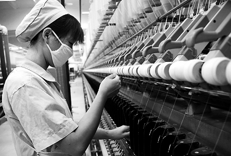 3月26日,位于鄧州市產業(yè)集聚區(qū)內的永泰棉紡股份有限公司員工正在趕制訂單產品?! ∈⒅緡?攝
