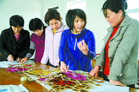 4月16日,汝南縣明振麥草畫工藝品廠的工人們正在一起交流制作技術(shù)。該企業(yè)的麥草畫暢銷日、韓等60多個國家,帶動當(dāng)?shù)?00多名婦女就業(yè)。