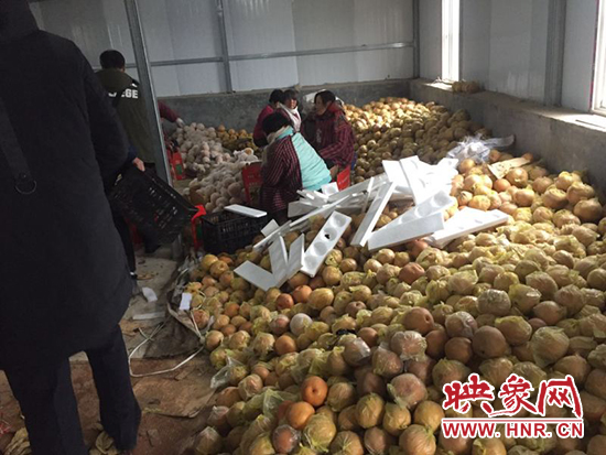 對(duì)于村民的說法,段坊村委主任荊惠卿說,目前,全村大概還有30多萬斤富硒梨,今天已經(jīng)和河南省豐合大容農(nóng)業(yè)發(fā)展有限公司簽訂了包銷意向,首批運(yùn)走三車共15噸。
