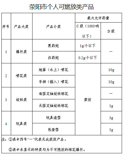 自2017年1月20日起,在滎陽市行政管理區(qū)域內(nèi)實(shí)行法定區(qū)域、劃定區(qū)域(中心建成區(qū))全面禁放,其他區(qū)域限品種燃放煙花爆竹。