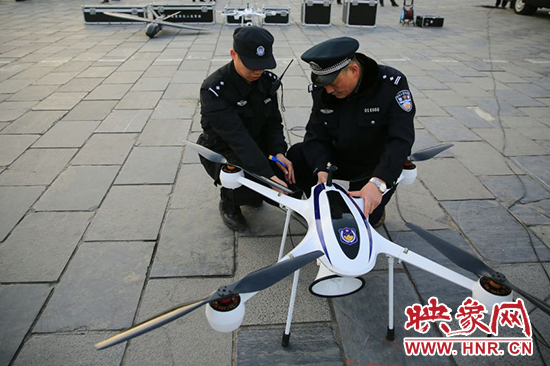 映象網(wǎng)訊(記者 王文凱 通訊員 牛智瑞 薛勇)1月20日下午,隨著首架警用無人機在滎陽市人民廣場升空試用,滎陽市治安管理正式步入“無人機時代”。這臺主要用于反恐處突、森林防火、應(yīng)急防空、交通巡查、應(yīng)急指揮、通信保障的警用無人機,將在春節(jié)期間進行空中巡邏,專盯違規(guī)在市區(qū)燃放煙花爆竹者。