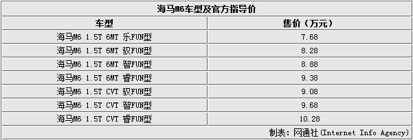 M6作為海馬2.0時代重要的一款車型,moofun系統(tǒng)的加入使得該車在造車?yán)砟钌暇团c以往不同,加之外觀造型上運動流暢的轎跑風(fēng)格,內(nèi)飾也更加年輕化布局,黃金的動力組合,該車的整體性能可圈可點,7.68萬元的起售價也足夠親民,相信海馬M6的市場前景將非常廣闊。(網(wǎng)通社 2015年4月20日 上海報道)