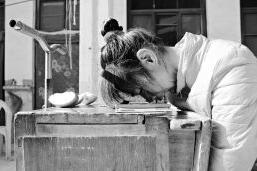 父親托村里的木匠為郭向鴿打造了一架特殊的“小車”——全身木質(zhì)結(jié)構(gòu),主體是一個木頭椅子,座位上有一個能打開的洞,便于郭向鴿上廁所;兩側(cè)安裝了擋板,防止她跌落;面前是一張小桌板,桌板上有一個固定飯碗的卡槽;下面還有一個小抽屜?!靶≤嚒毕路接?個輪子,椅子靠背和桌板一側(cè)各有一個把手,是用來移動“小車”的。輪子只能直來直去,需要拐彎時,只能費力地抬起扶手,把小車整個扭轉(zhuǎn)個方向,再推著繼續(xù)前進(jìn)?!靶≤嚒钡闹谱麟m然粗糙,每一個細(xì)節(jié)卻十分人性化。從小到大,這樣的小車郭向鴿已經(jīng)坐壞了好幾輛。隨著郭向鴿的成長和護(hù)理經(jīng)驗的積累,父親不斷改進(jìn)“小車”,最終形成了現(xiàn)在的模樣。每天早晨,郭向鴿醒來后,母親就艱難地將她從床上扶到小車上,晚上睡覺時再扶到床上。郭向鴿的吃喝拉撒都在小車上完成,這樣的日子已經(jīng)過了25年。有時候,當(dāng)冬天的陽光灑進(jìn)庭院,母親就會推郭向鴿出來曬曬太陽。但是,如果要推她出院門,郭向鴿是說什么都不會同意的。