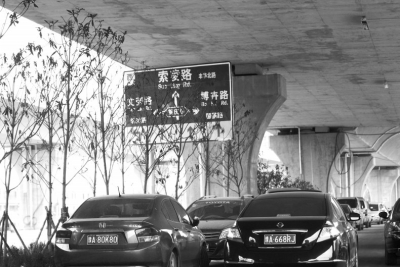 記者采訪時發(fā)現(xiàn),北三環(huán)成為整個三環(huán)快速化地面輔道中問題最多的道路。據(jù)市民方先生反映,北三環(huán)地面部分通車當(dāng)天,輔道就成為“社會停車場”。昨日,記者在地面駕車行駛發(fā)現(xiàn),北三環(huán)豐慶路、索凌路以及北環(huán)附近的廟李村附近,輔道內(nèi)側(cè)都??坑幸慌判∑嚕苊苈槁橥?吭诼愤叀?/p>