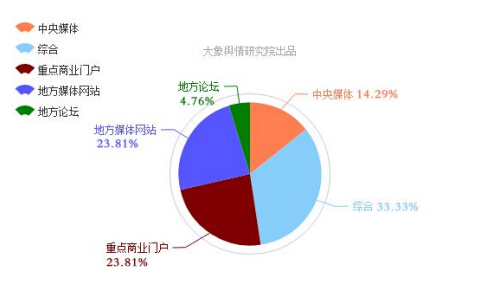 上圖可以看出,關(guān)注此事件的網(wǎng)絡(luò)媒體中,綜合類網(wǎng)站傳播活躍度最高,重點商業(yè)門戶網(wǎng)站和地方媒體網(wǎng)站旗鼓相當、緊隨其后。