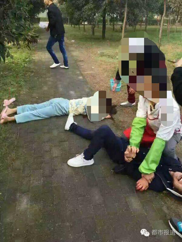 看見有人持刀傷人,附近的商戶和老師都趕緊跑過來幫助女生,控制住了情緒激動的男子。