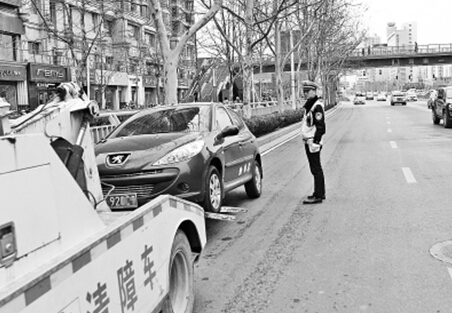 金水路已開啟嚴管模式,交警對路邊違停車輛進行拖移。