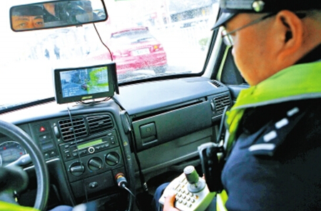 警車上配備的車載動態(tài)取證系統(tǒng),在巡邏的同時可對道路上的交通違法行為進行攝錄取證。記者白周峰攝影