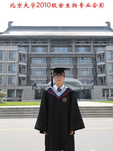 北京大學(xué)2010級(jí)古生物專業(yè)學(xué)生薛逸凡在社交網(wǎng)站上發(fā)布了張“一個(gè)人的畢業(yè)照”,據(jù)其所畢業(yè)的北大元培學(xué)院副院長盧曉東介紹,“這是全中國唯一的一個(gè)只有一名學(xué)生的專業(yè),差不多是每個(gè)年級(jí)有一個(gè)人?!膘趴岬?jīng)]有同學(xué)。。。