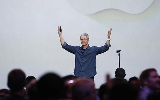 蘋果總裁庫克在發(fā)布會(huì)上發(fā)布iPhone 6、iPhone 6 Plus和Apple Watch