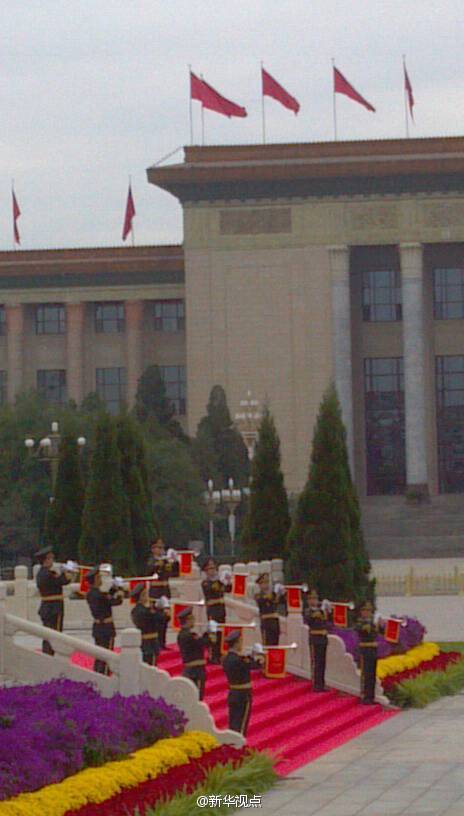 新華網(wǎng)北京9月30日電 據(jù)新華社“新華視點(diǎn)”微博報(bào)道,今天是國(guó)家設(shè)立的首個(gè)烈士紀(jì)念日,正值新中國(guó)成立65周年之際。上午,習(xí)近平、李克強(qiáng)、張德江、俞正聲、劉云山、王岐山、張高麗等來到天安門廣場(chǎng),與首都各界代表一起,出席向人民英雄敬獻(xiàn)花籃儀式。