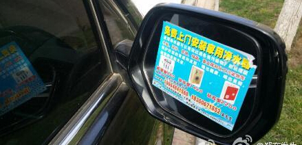 據(jù)鄭州市民劉先生報(bào)料,昨天下午兩點(diǎn)多,在鄭州市建業(yè)路建業(yè)花園小區(qū),開(kāi)車的時(shí)候發(fā)現(xiàn)愛(ài)車的后視鏡被貼上了不干膠的小廣告.“尼瑪!害得我在寒風(fēng)中半個(gè)小時(shí)還沒(méi)有清干凈……”你還見(jiàn)過(guò)、遇到過(guò)哪些奇葩的、令人想罵人的小廣告呢?
