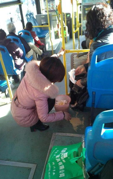 @西蒙無(wú)線:剛剛在201公交車上看到一感人的一幕:倆姑娘上車剛剛坐下,手提的奶茶不小心掉在公交車的地板上,將奶茶灑了一地。一姑娘立刻用自帶的衛(wèi)生紙開(kāi)始清理灑落的奶茶,并很快的清理干凈。其實(shí)兩位姑娘只坐了三站公交車。