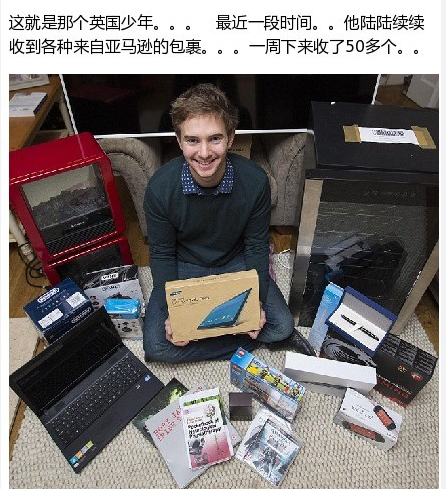 英國(guó)有個(gè)少年很煩惱。近一周他陸續(xù)收到50多個(gè)來(lái)自亞馬遜寄錯(cuò)給他的包裹。忐忑之下,他給亞馬遜的客服打了電話。亞馬遜:啊對(duì)不起,是我們弄錯(cuò)了,給你寄了那么多,給你添麻煩了。你就全部留下吧,我們不要了...有點(diǎn)爽...