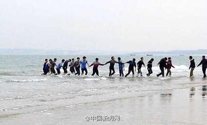 12月7日,河北秦皇島一黃衣女子獨自向海里走去,就快被海水淹沒。燕山大學18名學生頂著寒風,在冰冷的海水中手拉手,連成一條三四十米長的生命鎖鏈,將女子被攙扶上岸,一名男子還將自己的棉衣披在她身上。為這些勇敢的大學生們點個贊!