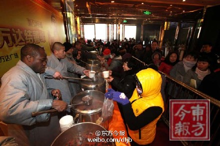 今早9點(diǎn),大學(xué)路二七萬達(dá),聚集上千人,少林寺免費(fèi)施粥,三天熬制兩萬份。不少市民早上7點(diǎn)來排隊(duì),提著餐盒保溫桶大碗,現(xiàn)發(fā)現(xiàn)喝。大早上一碗熱乎乎的臘八粥下肚,透心暖?,F(xiàn)場(chǎng)人員還在源源不斷增加中。今天你喝臘八粥了嗎?