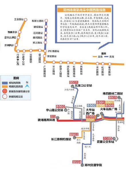 鄭州市有軌電車中原西路線路起點(diǎn)為地鐵一號(hào)線西流湖站,終點(diǎn)為滎密路與科學(xué)大道交叉口。另設(shè)支1線連接鄭州西三環(huán),支2線滎陽(yáng)四方車輛廠至主線。主要沿鄭上路、樂山路、中原西路、光武路、老國(guó)道310及滎密路敷設(shè)。