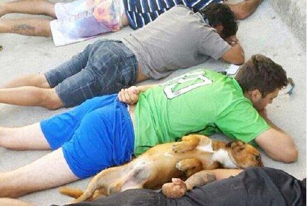 巴西警方最近搗毀了一個(gè)毒販老巢。警察剛破門的時(shí)候毒販家的看門狗還對(duì)著警察狂叫,后來(lái)發(fā)現(xiàn)它的主人被警察制服了以后,居然也跟著主人一樣自覺躺在地上一動(dòng)不動(dòng)了……
