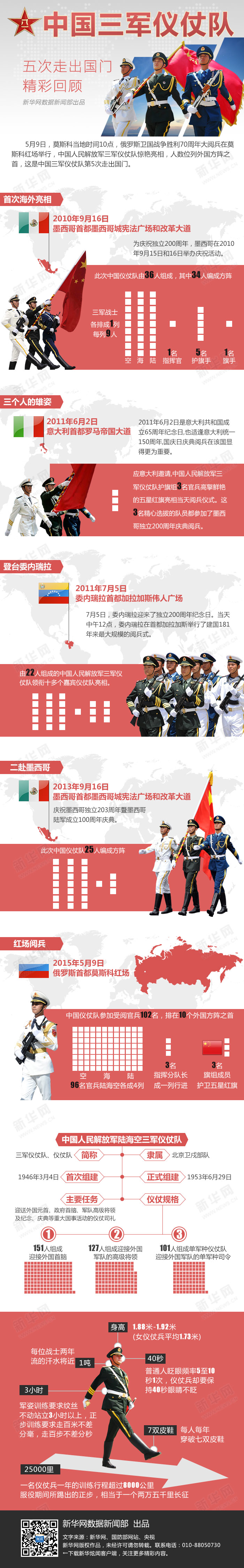 5月9日,莫斯科當(dāng)?shù)貢r(shí)間10點(diǎn),俄羅斯衛(wèi)國(guó)戰(zhàn)爭(zhēng)勝利70周年大閱兵在莫斯科紅場(chǎng)舉行,中國(guó)人民解放軍三軍儀仗隊(duì)驚艷亮相,這是中國(guó)三軍儀仗隊(duì)第5次走出國(guó)門。